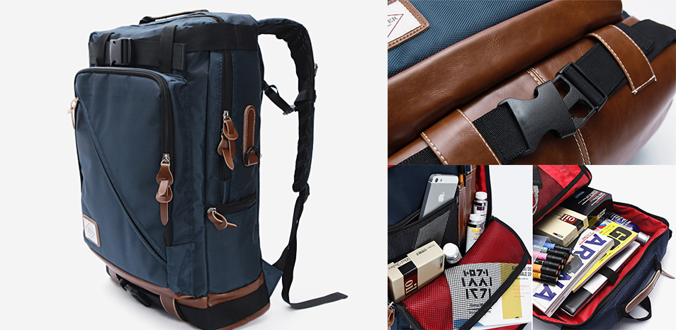 多樣化的小收納袋是其主要特色,加上大容量的主收納空間,可收納筆記型電腦等多樣物品。採用 Polyester 1680D 高級面料製成,無論搭配甚麼樣的服裝都很適合,絕對是一款不可或缺的百搭良品。雙收納袋功能,拿取物品更加方便