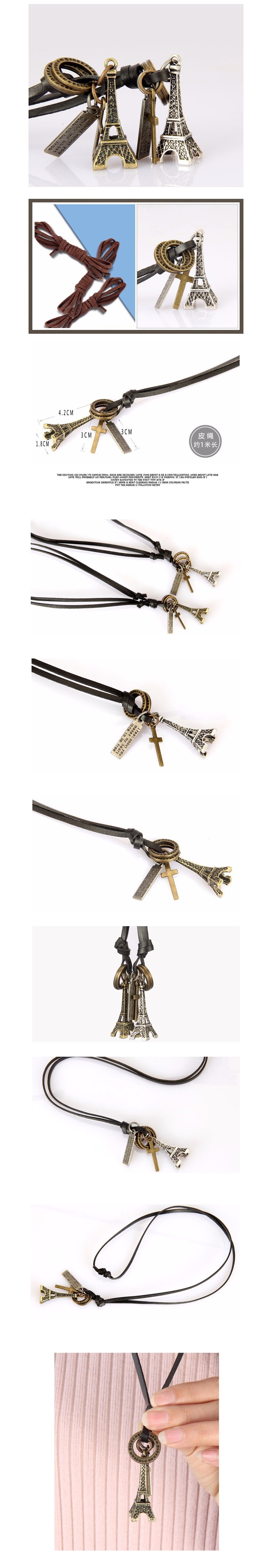 J.ST-仿古巴黎鐵塔牛皮繩項鍊【SL0089】