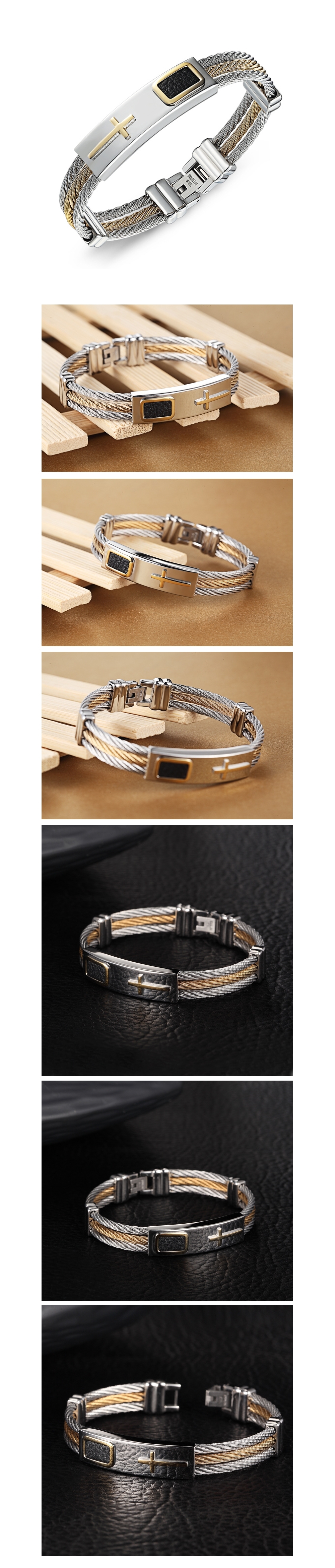 十字架三排間金鋼絲麻繩鈦鋼手環【EX785】