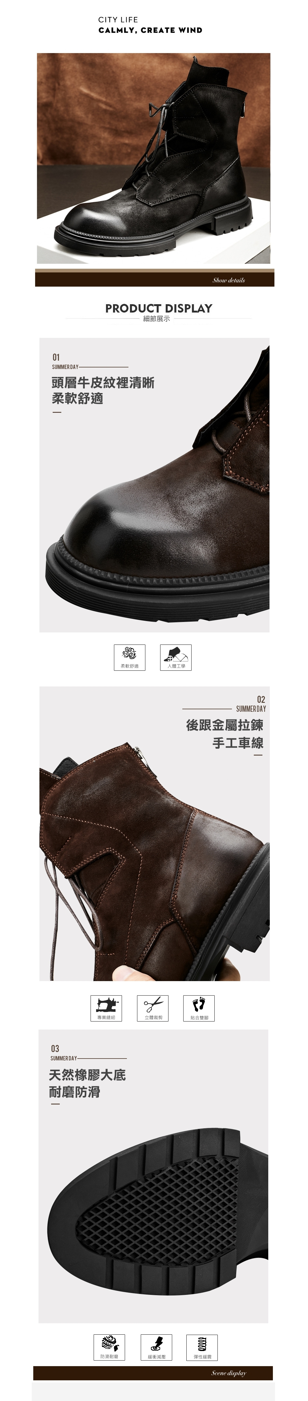 J.ST-復古擦色不規折設計後拉鍊牛皮中高筒靴子【WG5840】