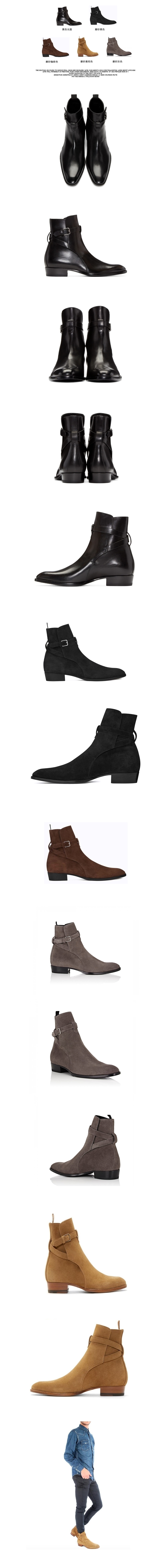 時尚繞筒皮扣套穿尖頭牛皮靴【P338】