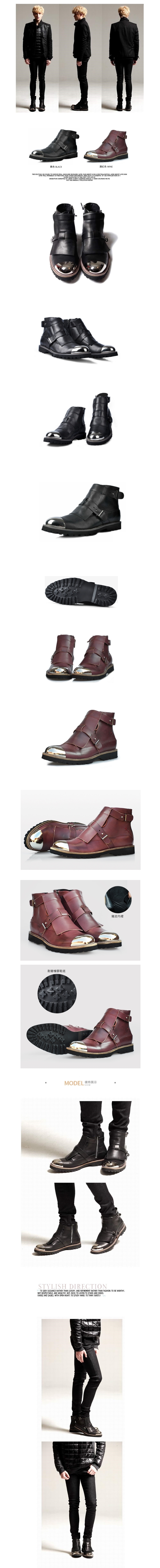 J.ST-時尚鏡面鞋頭皮釦蓋面牛皮中筒靴【BMT3061】