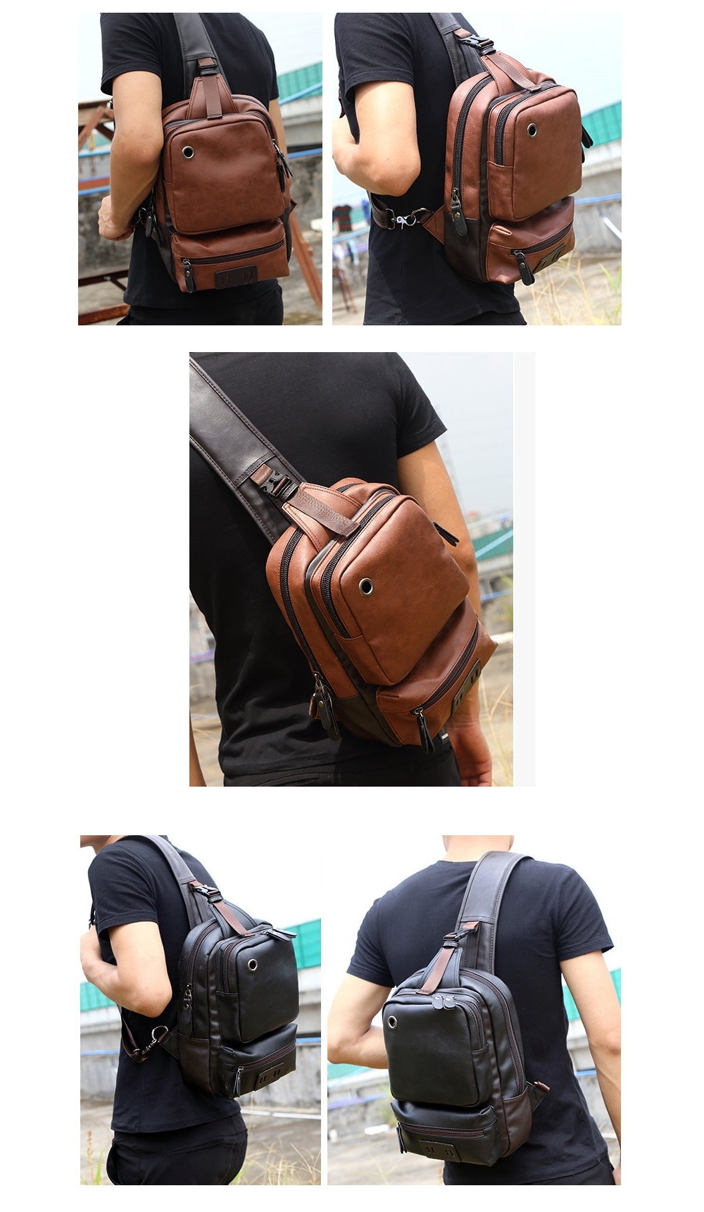 J.ST-耳機孔多層設計皮革胸包【FT7713】
